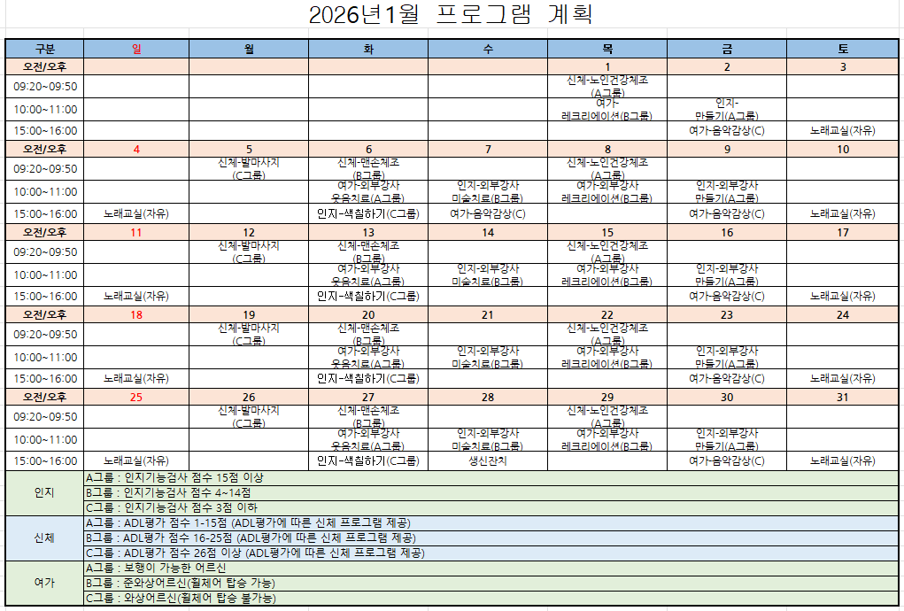 2026년 1월 프로그램 계획